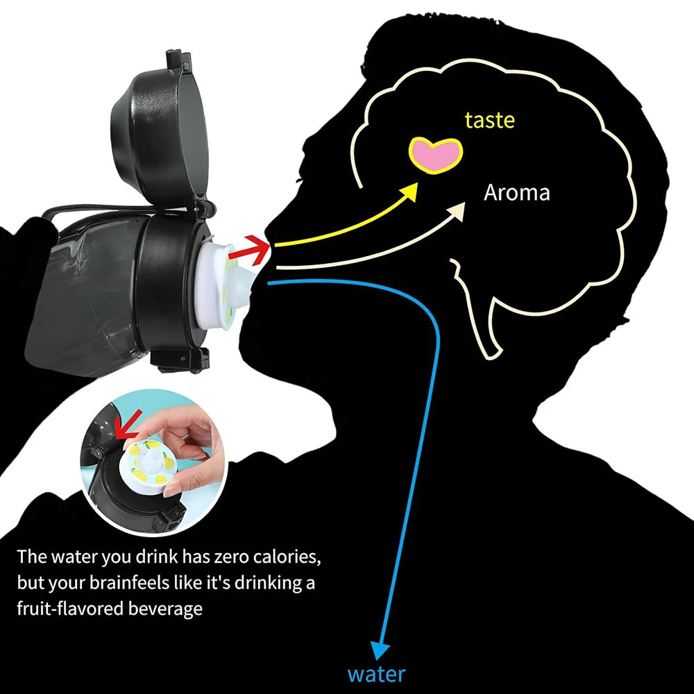 Tired of plain water but want to avoid sugary sodas and artificial juices? Our 22 oz Air Water Bottle uses Scent-Flavor Technology to trick your brain into tasting delicious fruit while you drink 100% pure, healthy water. It’s the easiest way to stay hydrated and protect your health.
